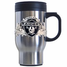 Our collector Oakland Raiders NFL stainless steel travel mug contains a uniquely sculpted and enameled three dimensional pewter emblem that is designed to depict both the team and it's community.