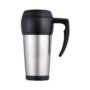 "STAINLESS STEEL TRAVEL MUG, CHARCOAL" Feature