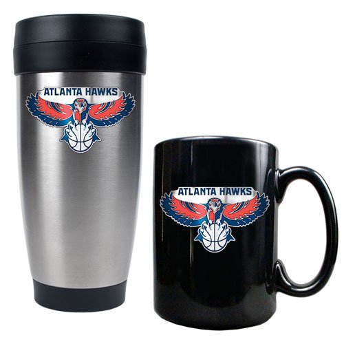 "Atlanta Hawks NBA Stainless Steel Travel Tumbler & Black Ceramic Mug Set - Primary Logo" Overview